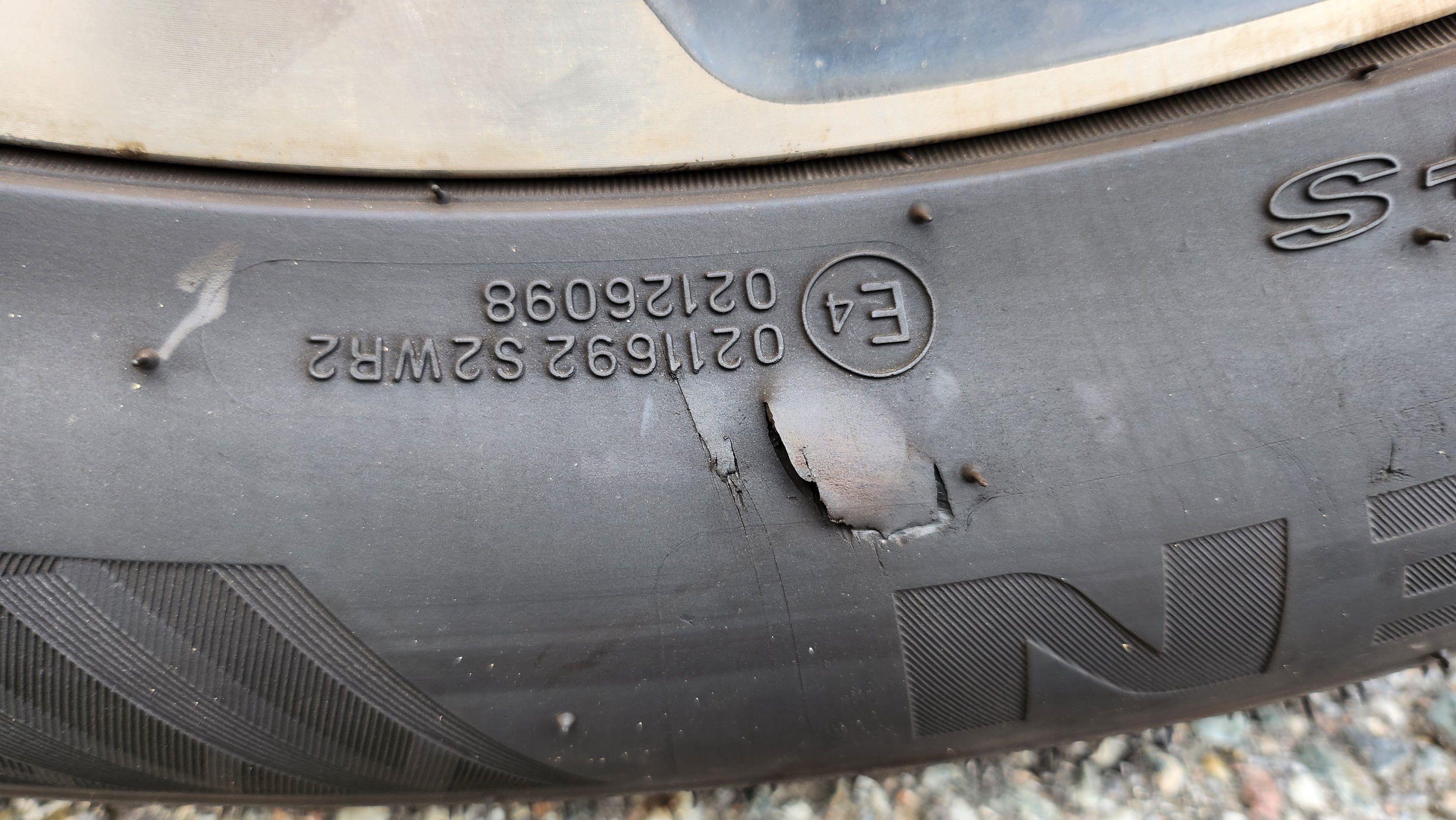 그런데 와이프가 오른쪽 앞바퀴를 어디 보도블럭 같은 곳에 사이드를 긁었는지 옆 면이 찢어 졌더군요.