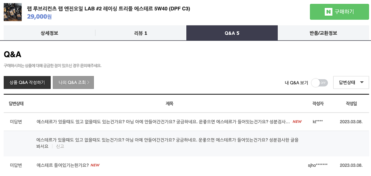 '엔진오일의 불편한 진실' 카페에서 분석한 내용입니다. 원하시는 분은 들어가서 보셔도 될 것 같습니다.