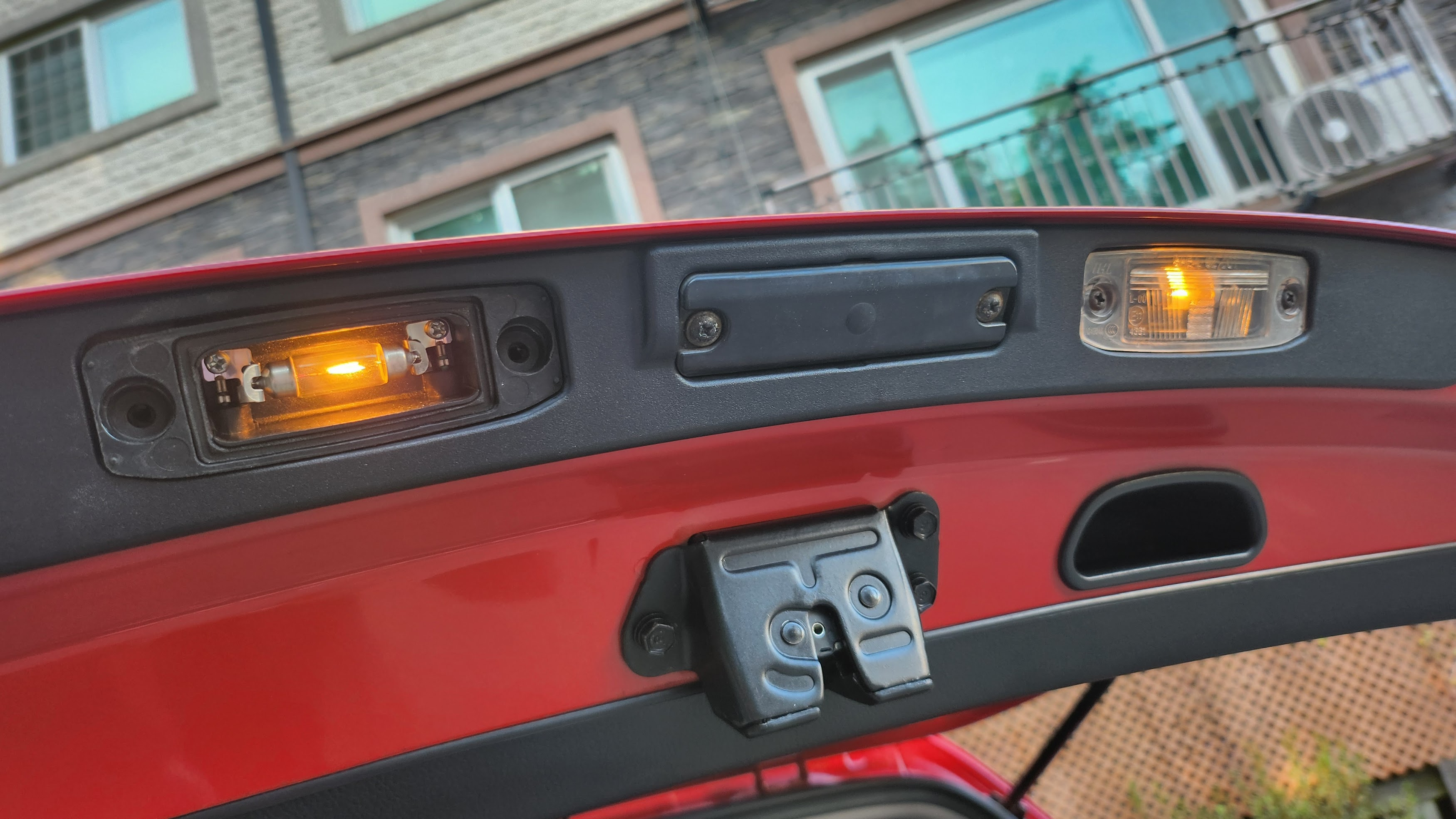 체리의 번호판등이 두 개 있는데 왼쪽 것이 나간지가 좀 됐습니다.