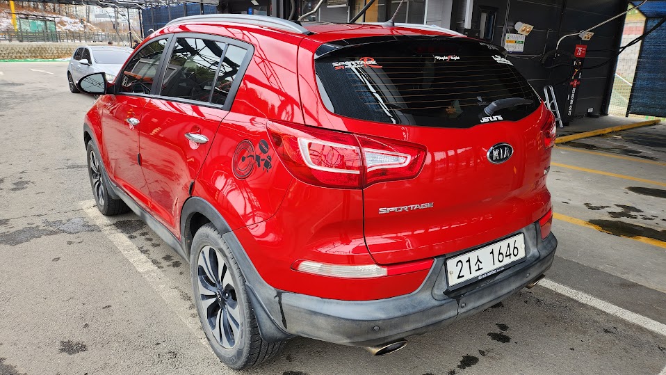타이어 드레싱 할 수 있는 스펀지를 안가지고 가서 하단 몰딩부와 타이어는 오늘도 더럽네요.