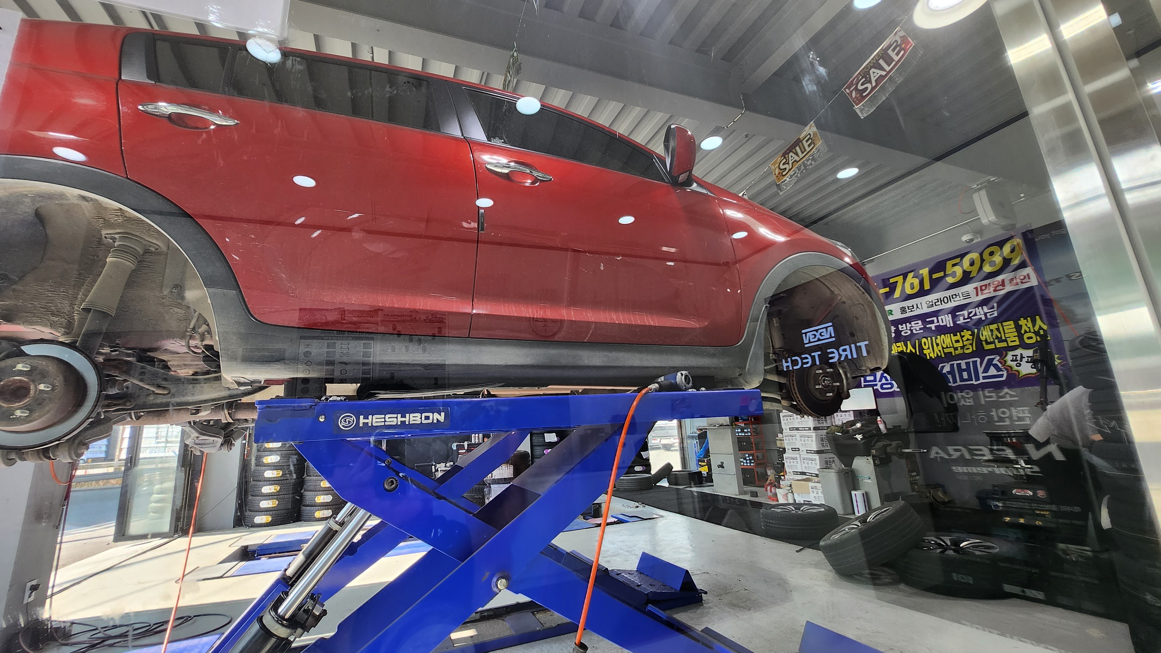 휠밸런스를 보고서 새로운 타이어를 부착했습니다. 새로운 타이어를 부착했으니 휠 얼라이먼트도 봐야죠 ^^